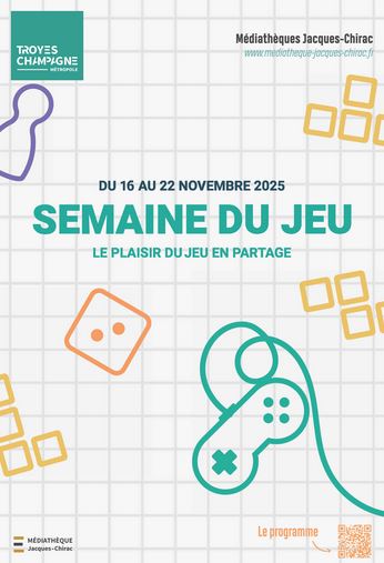Samedi 22 Novembre : La nuit du jeu de la médiathèque Jacques Chirac de Troyes, de 18h à 23h. Jeu de société en accès libre, mais aussi jeux vidéos et jeu de rôle.