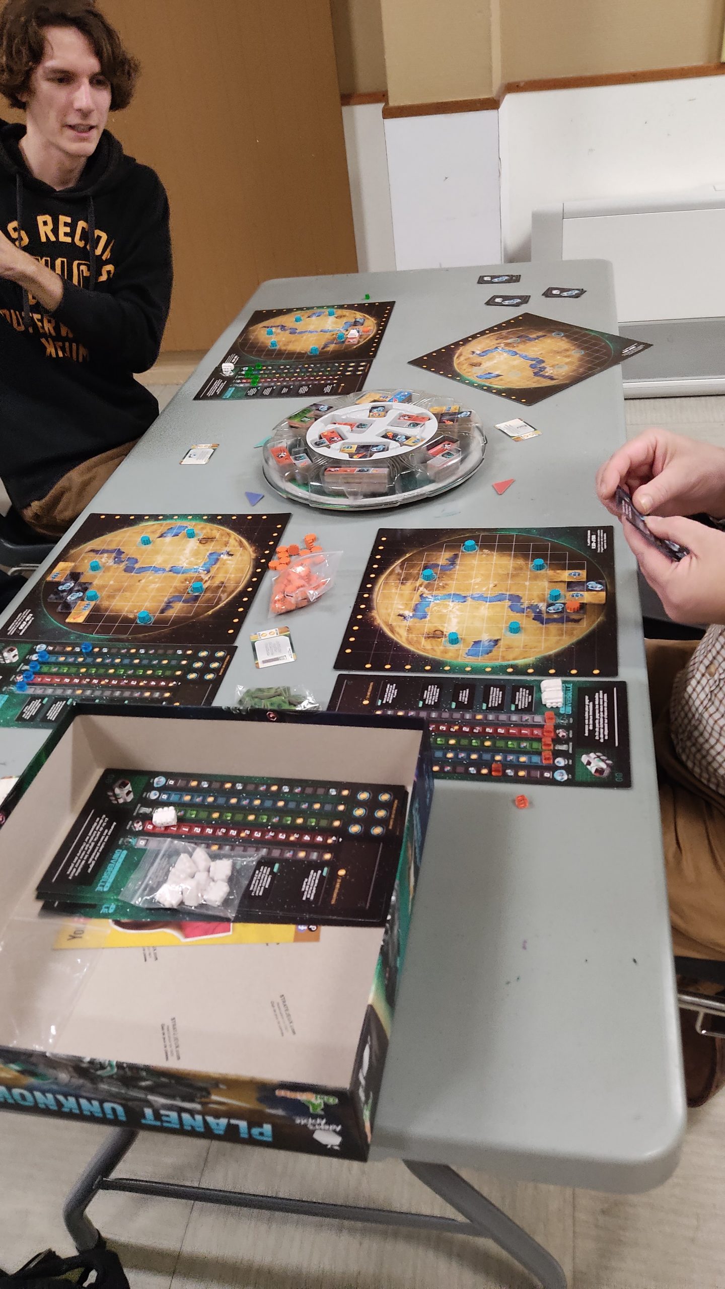 Enfin Maxence a pu essayé pour la première fois un grand classique qui sort très souvent chez Arts et jeux Sancéens et chez Stratejeux : Planet Unknown