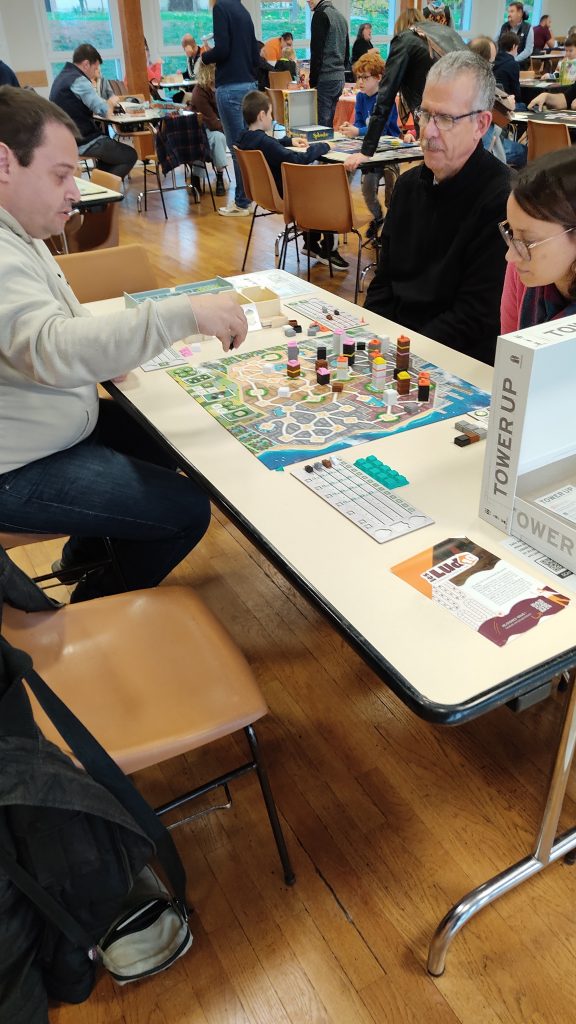 La semaine dernière, un festival de jeu porté par Arts et jeux Sancéens et épaulé par notre association s’est tenu à St Julien. Environ 500 personnes ont fait le déplacement pour jouer, s’affronter amicalement sur un concours (Odin, Planet Unknown, Toy battle…), participer à la brocante ludique… A ce propos, je ne sais pas si Alexia a vendu son équivalement « cloison » en boite de jeux !