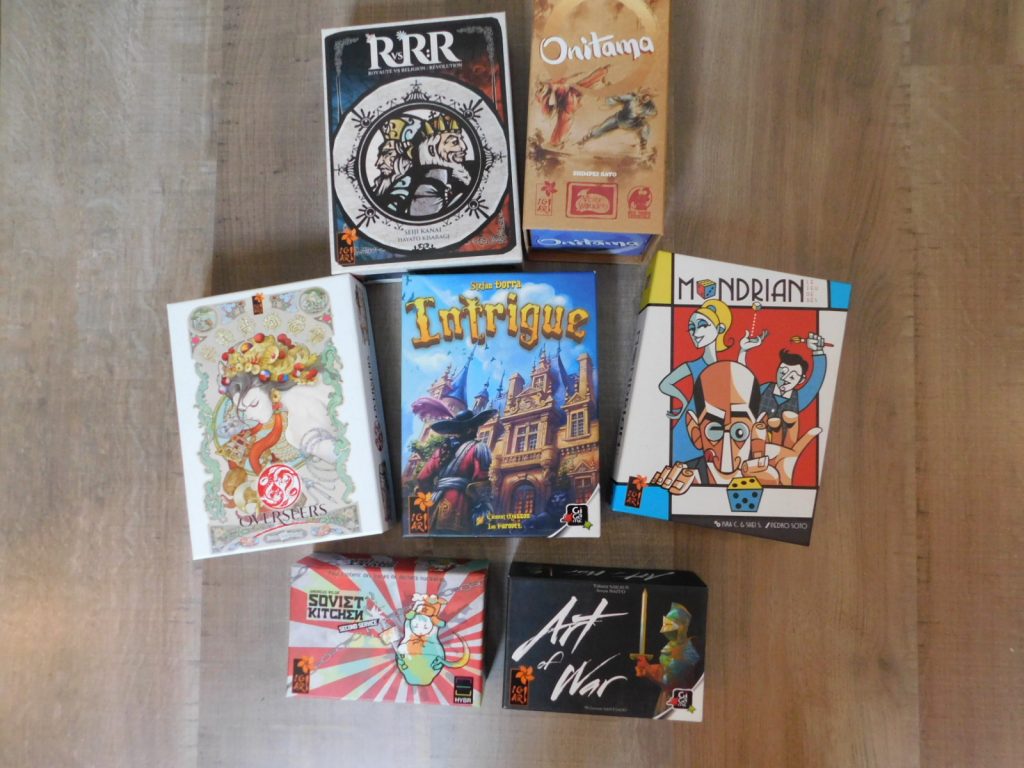 Quand on se lance dans le monde du jeu de société d’auteurs, on tombe vite sur des personnes attachantes ou des structures d’édition intéressantes. Les jeux édité par M Raphaël (quel jolie prénom) avec sa maison d’édition Igiari me font toujours de l’œil. Rapide à mettre en place, tantôt stratégique et abstrait, ou à l’inverse terriblement taquin… Ma ludothèque regorge de ses jeux que j’ai pu vous faire tester épisodiquement au club.