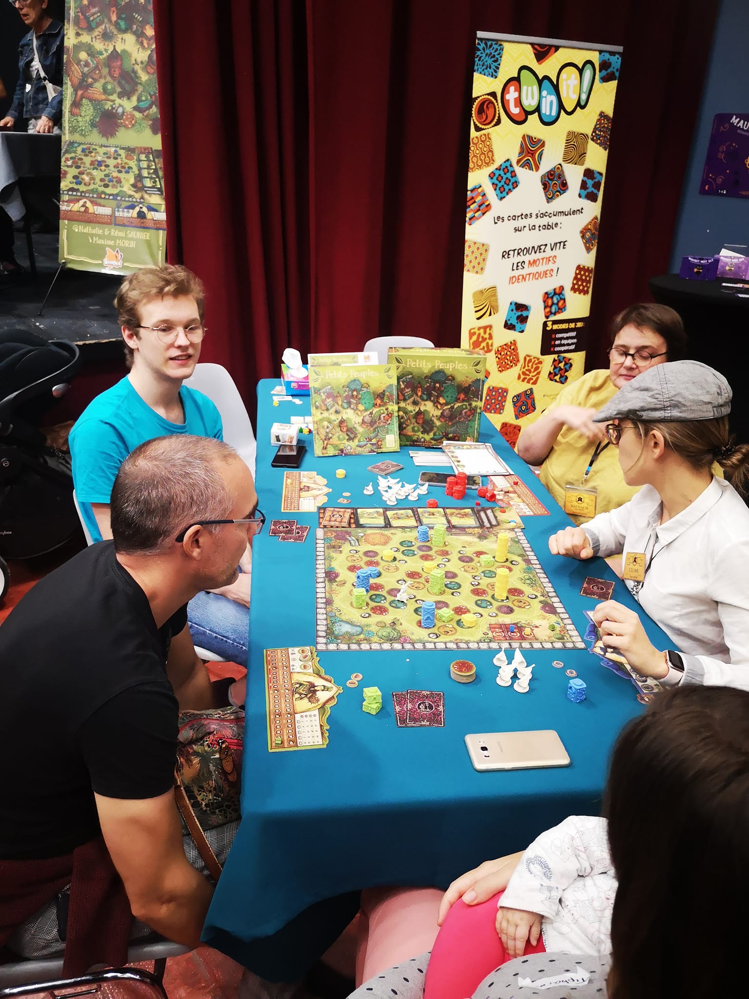 Le couple Saunier était également présent et avait fait le déplacement depuis la Vendée pour présenter leurs jeux. Parler création avec Remy a été passionnant. J’adore son titre Petits peuples et il compte apporter du narratif dans ce titre très mécanique via une extension en téléchargement gratuit dans les semaines qui viennent. Il travaille même sur un prochain jeu avec Thomas Dupont qui fusionne l’univers de petits peuples et codex naturalis !