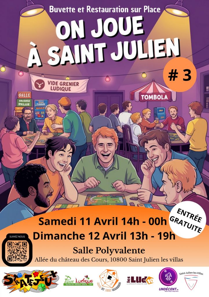Comme tous les ans, la ludothèque de St André organise la nuit du jeu d’hiver à la salle des fêtes de St André, l’occasion, pour nous, de nous retrouver, là bas, afin de rencontrer d’autres amoureux des jeux…