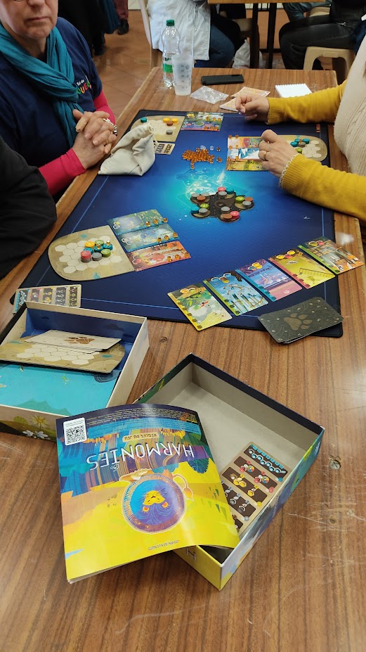 Aucun festival ne peut se tenir sans faire jouer au magnifique Harmonie : jeu où on construit un paysage avec des jetons terrains qui scorent de manière différentes (rivière, montagne…). Il faut également accueillir des animaux pour maximiser les points.